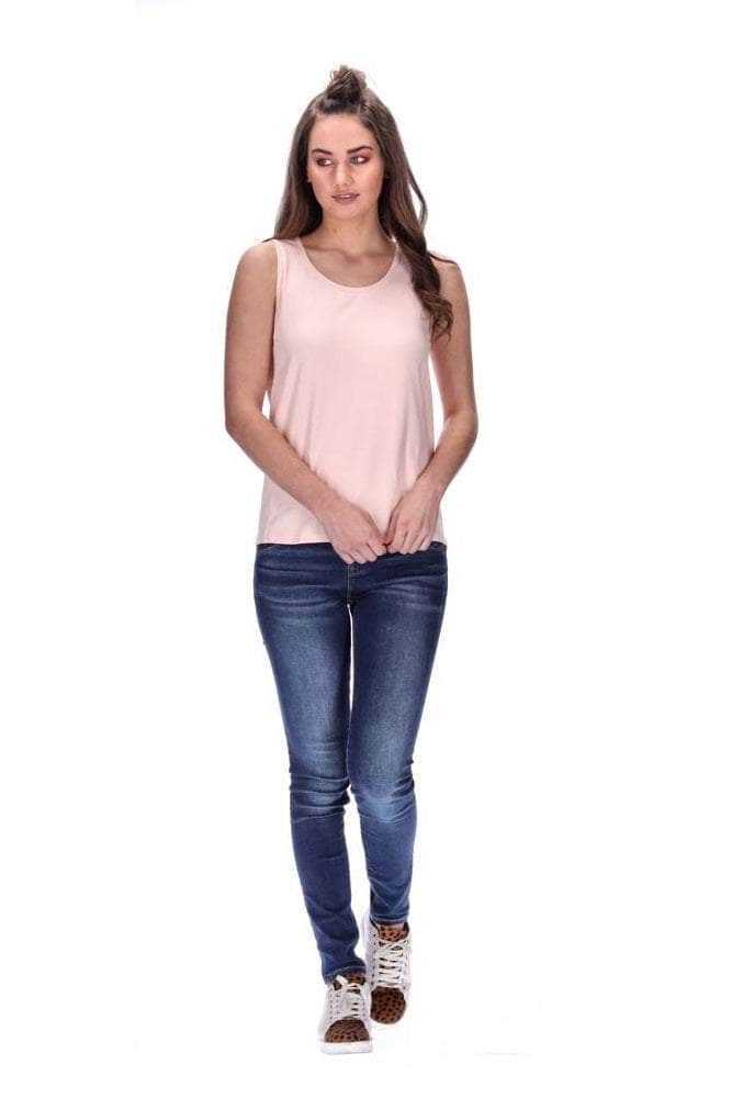 Singlet Features: Princess seam with wider straps and a dipped back hemline