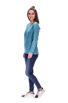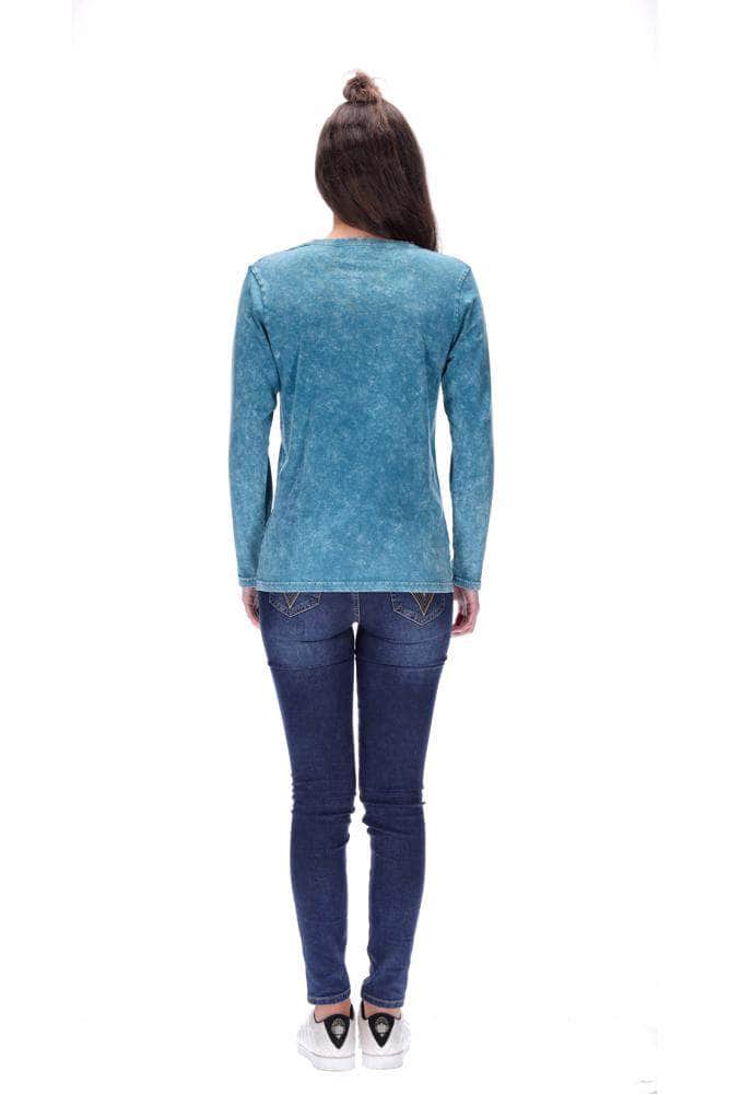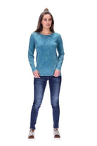 Features: DISTRESSED, neck ribbing , straight hemline with long sleeves