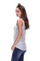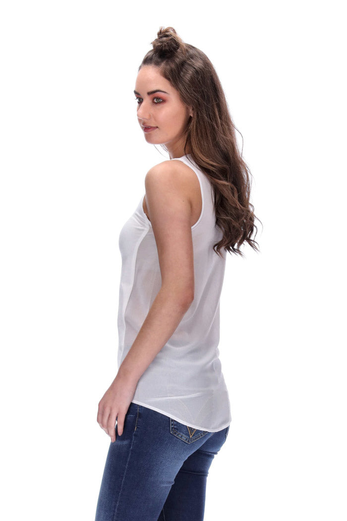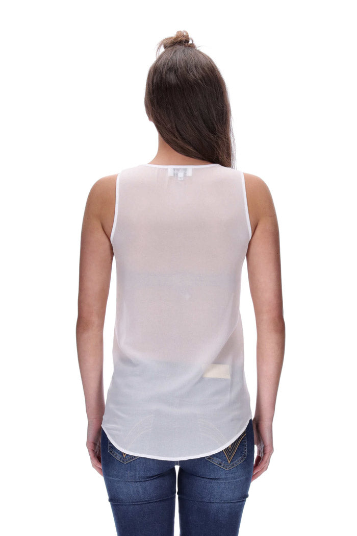 Singlet Features: Contrast chiffon back , curved hem, dipped back