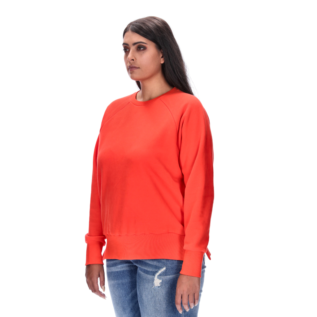 Features: Raglan sleeve sweater with side splits, ribbed neckline, chunky cuffs and hemband