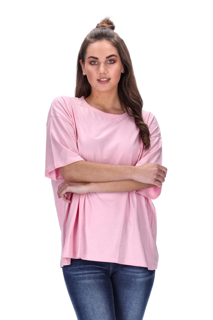 T-Shirt Features: Ribbed neck, dropped shoulder, oversized, elbow length sleeves, straight hemline