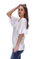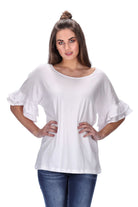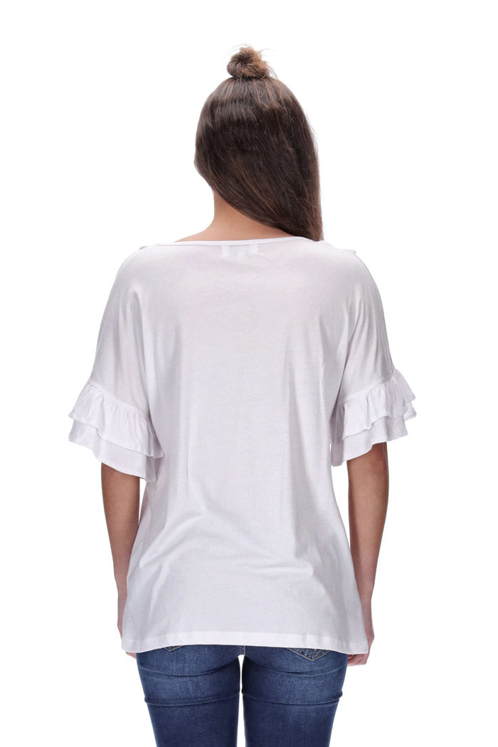 Features: Frill sleeves, dropped shoulder, straight hemline