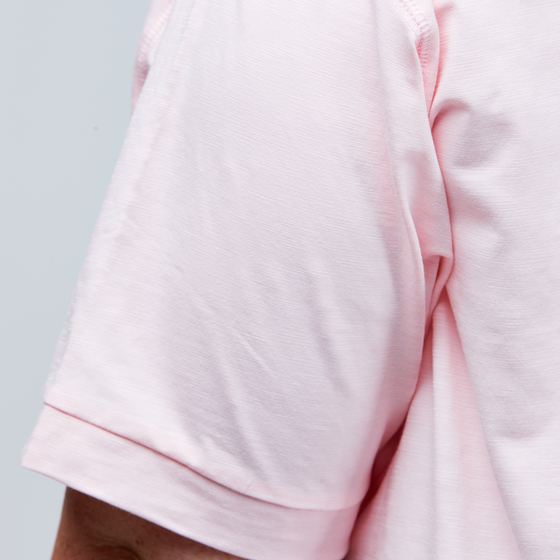 Feature: Short sleeves finished with bands and stitched panel seams, slightly shorter length body creating a more square shape, especially good for column and apple figure types