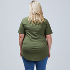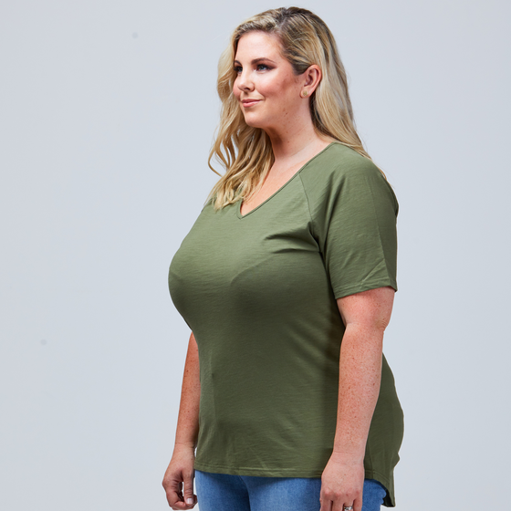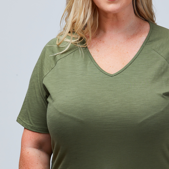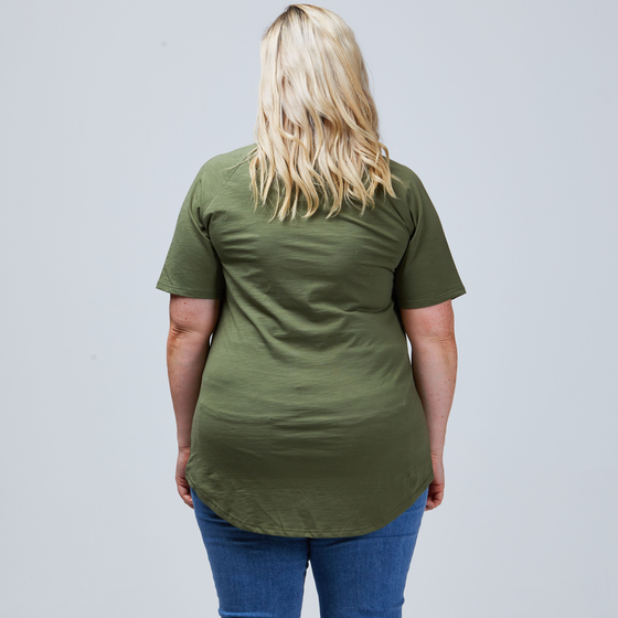 Features: Raglan sleeve, more fitted style with shaped side seams, curved back hem, especially good for hourglass shaped ladies