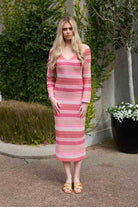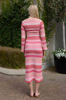 Jessie V Neck Maxi Knit Dress Stripe Pink