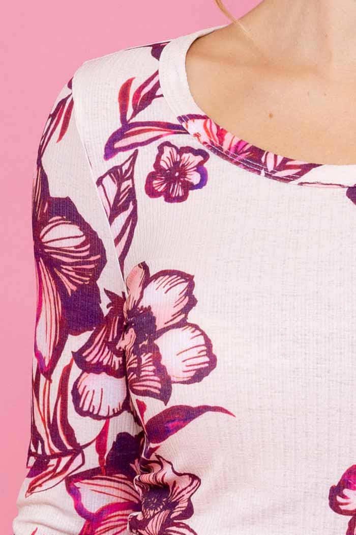 - Cream based rib with pink floral print