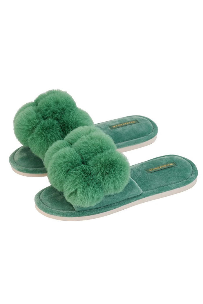 Annabel Trends Cosy Luxe Slippers Pom Pom M/L Spearmint