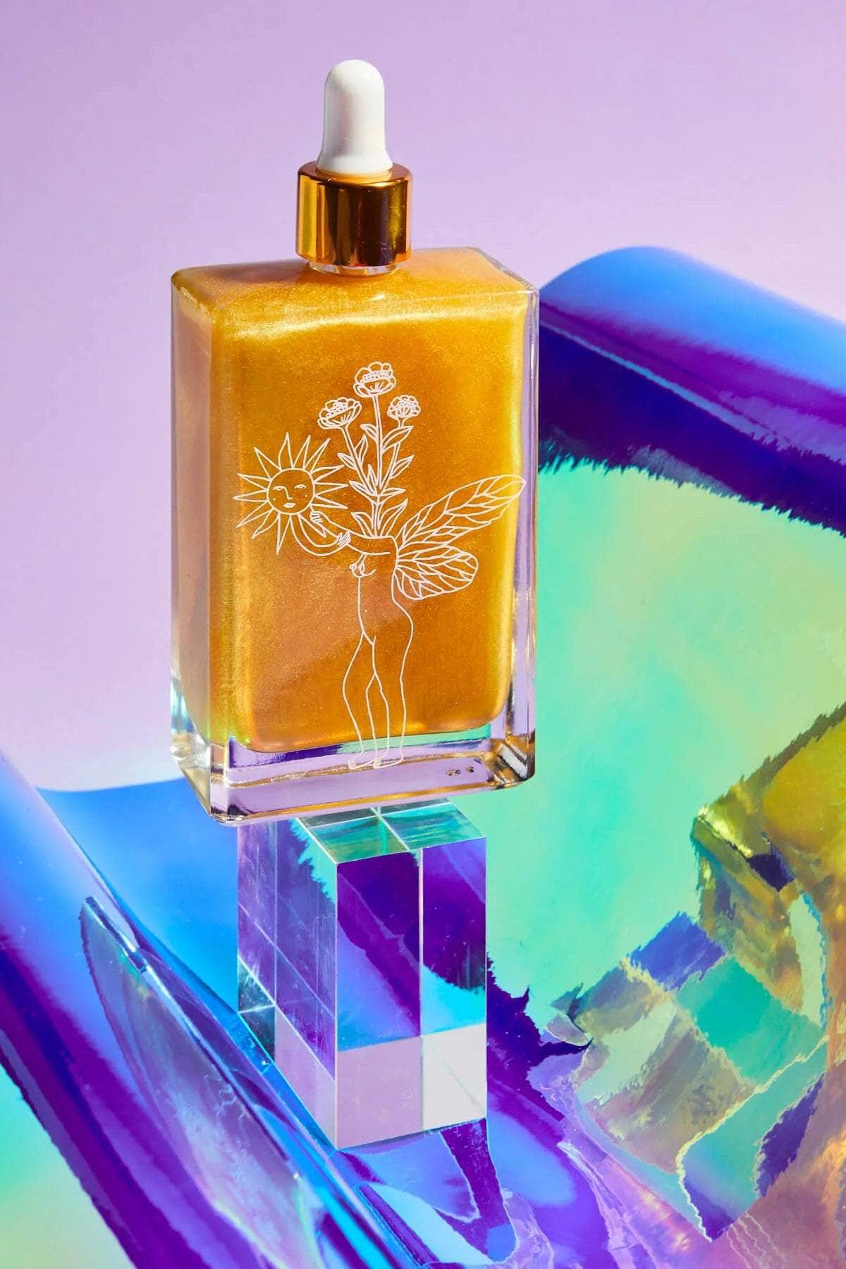 Our Summer Solstice Body Oil is an all natural shimmer oil with a delicate floral perfume thanks to the beautiful Ylang Ylang, Grapefruit, Mandarin & Sweet Orange.