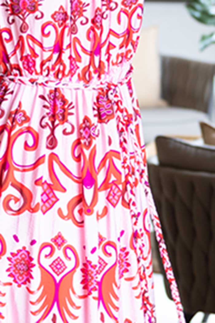 A gorgeous pink print maxi dress.