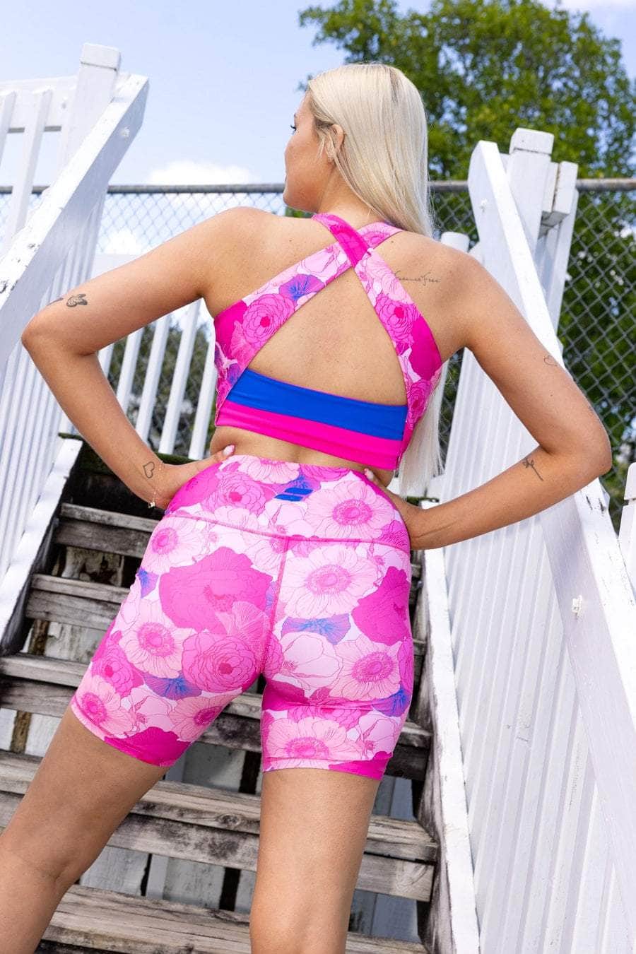 A hot pink floral print full coverage crop top