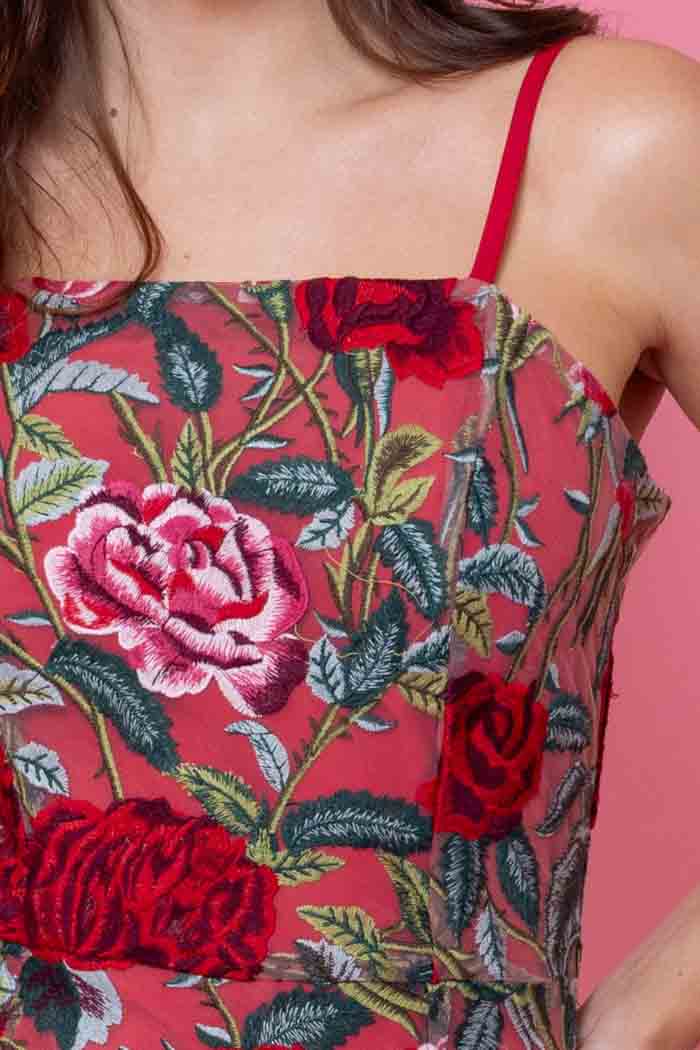 - Red & green floral print mesh