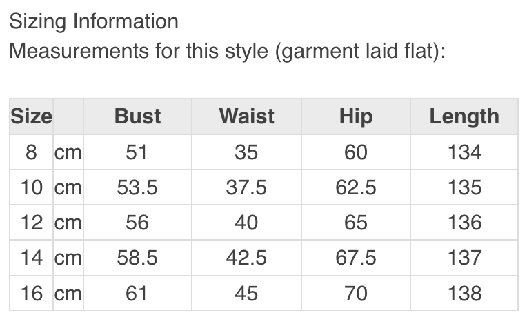 - Available in sizes 8-16