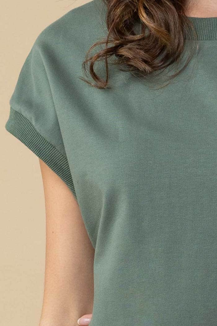 - Cap sleeves with rib bands