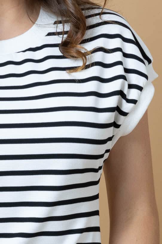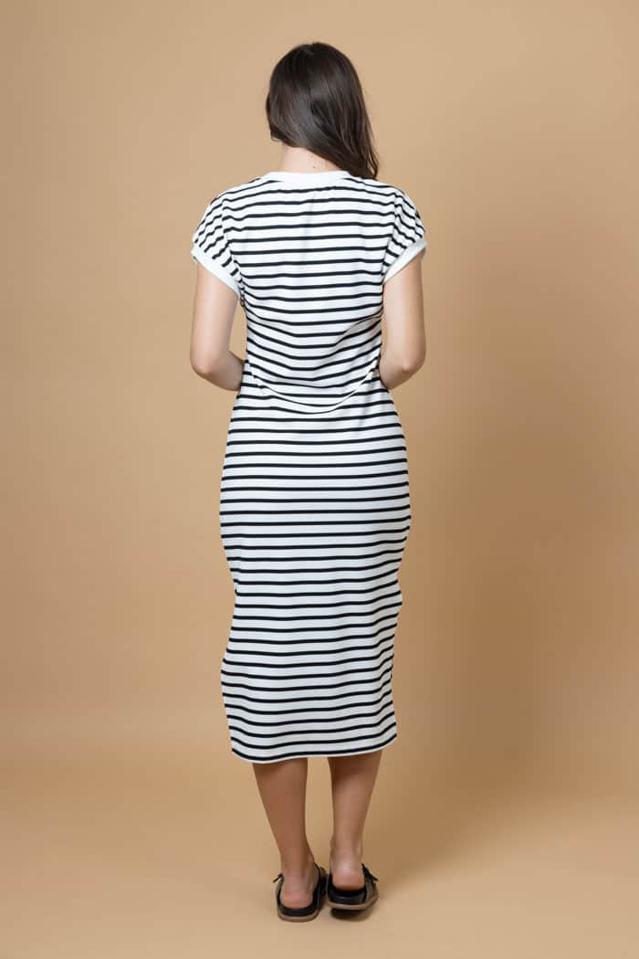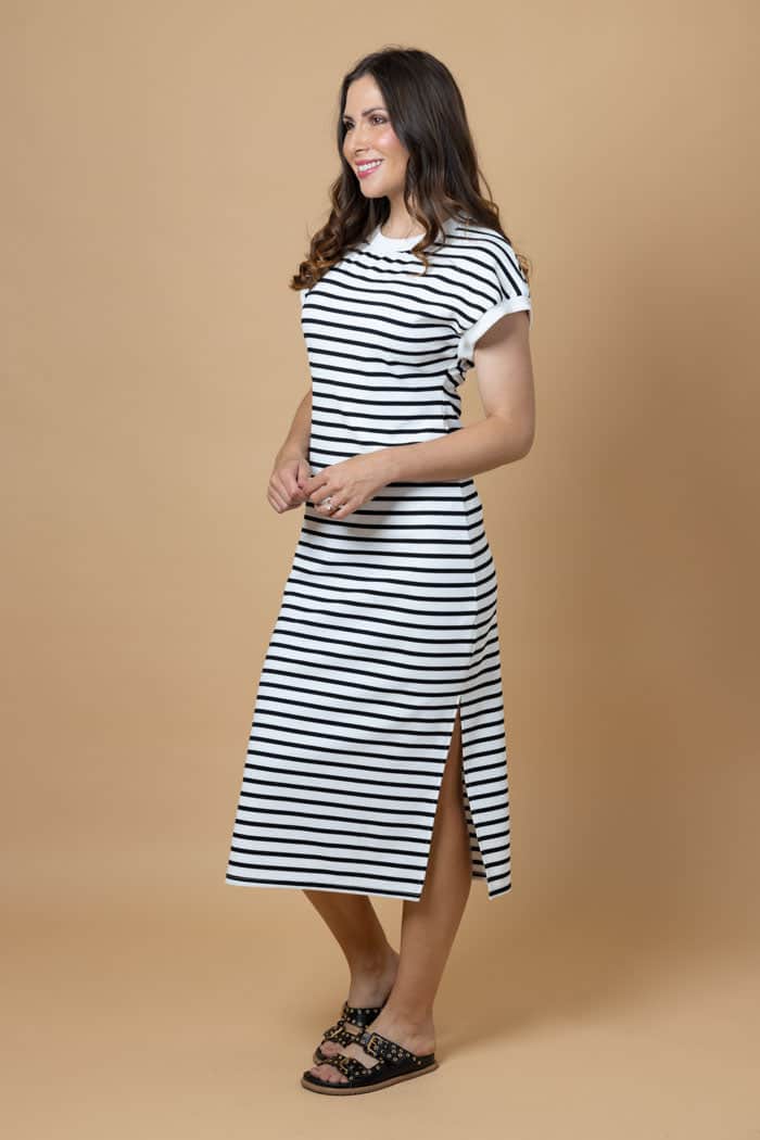 A black & white striped jersey t-shirt midi dress.