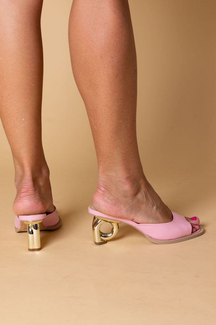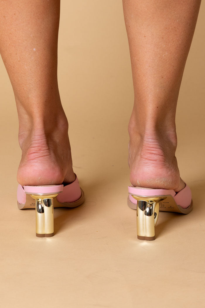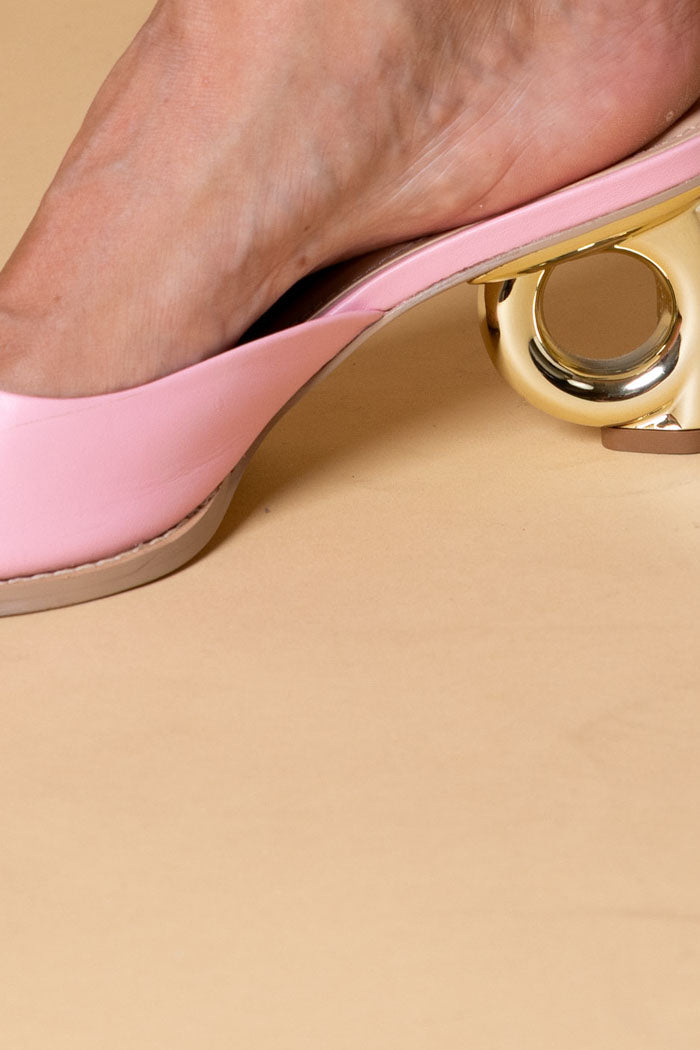 A suede & gold snakeskin print pointed heel with cut-out inner.