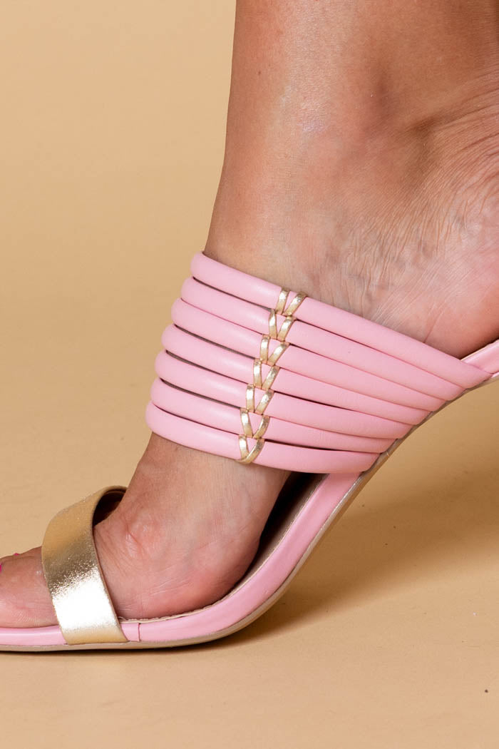 A suede & gold snakeskin print pointed heel with cut-out inner.