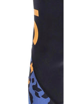 - Blue ribbed leopard print& plain blue lower leg panels