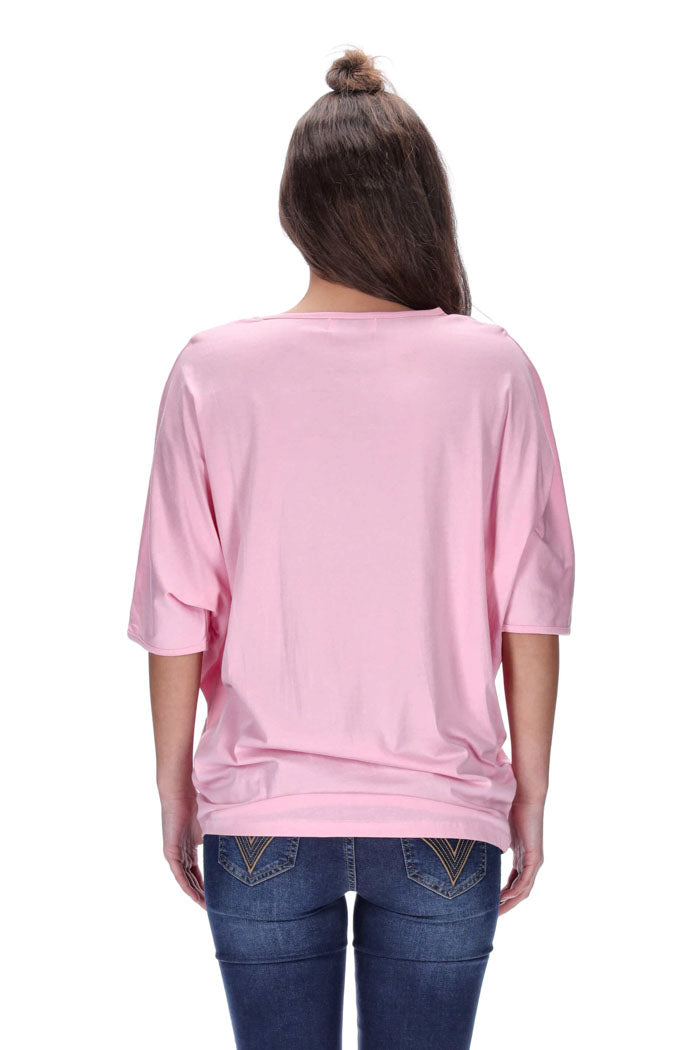 Features: Batwing sleeves, elbow length sleeves, asymmetric left side seam