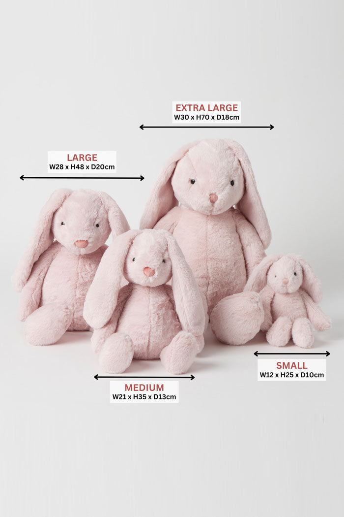 This lovable bunny is the perfect companion for newborns and toddlers! Made from ultra-plush fabrics and child-safe trimmings, little ones will love the feel of its irresistibly soft fur, making it great for cuddles, and its beanie bottom will help it sit upright during playtime or when displayed on the shelf. This bunny also loves going on adventures and can be carried around by its floppy ears, which are the perfect size for little hands to hold.