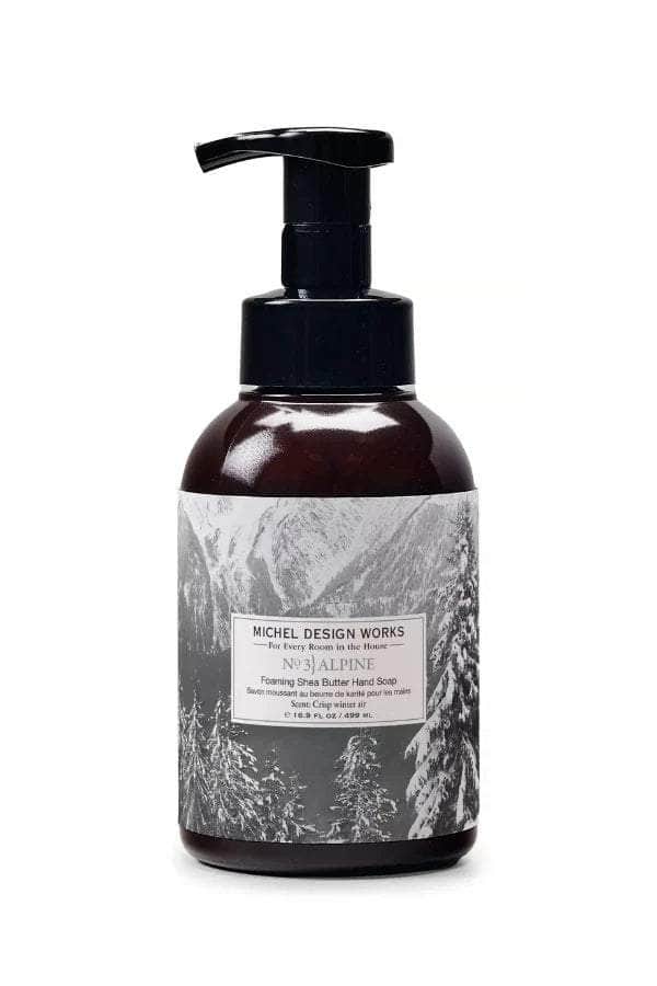 Michel Design Works Alpine Foaming Hand Soap. The generous size of the foaming hand soap proves you can offer great value without sacrificing quality. The soap contains luxurious shea butter and aloe vera, for gentle cleansing and moisturizing. It creates a soft lather that will gently cleanse, nourish and, most importantly, condition your skin. It also makes a great gift, perfect all year round.