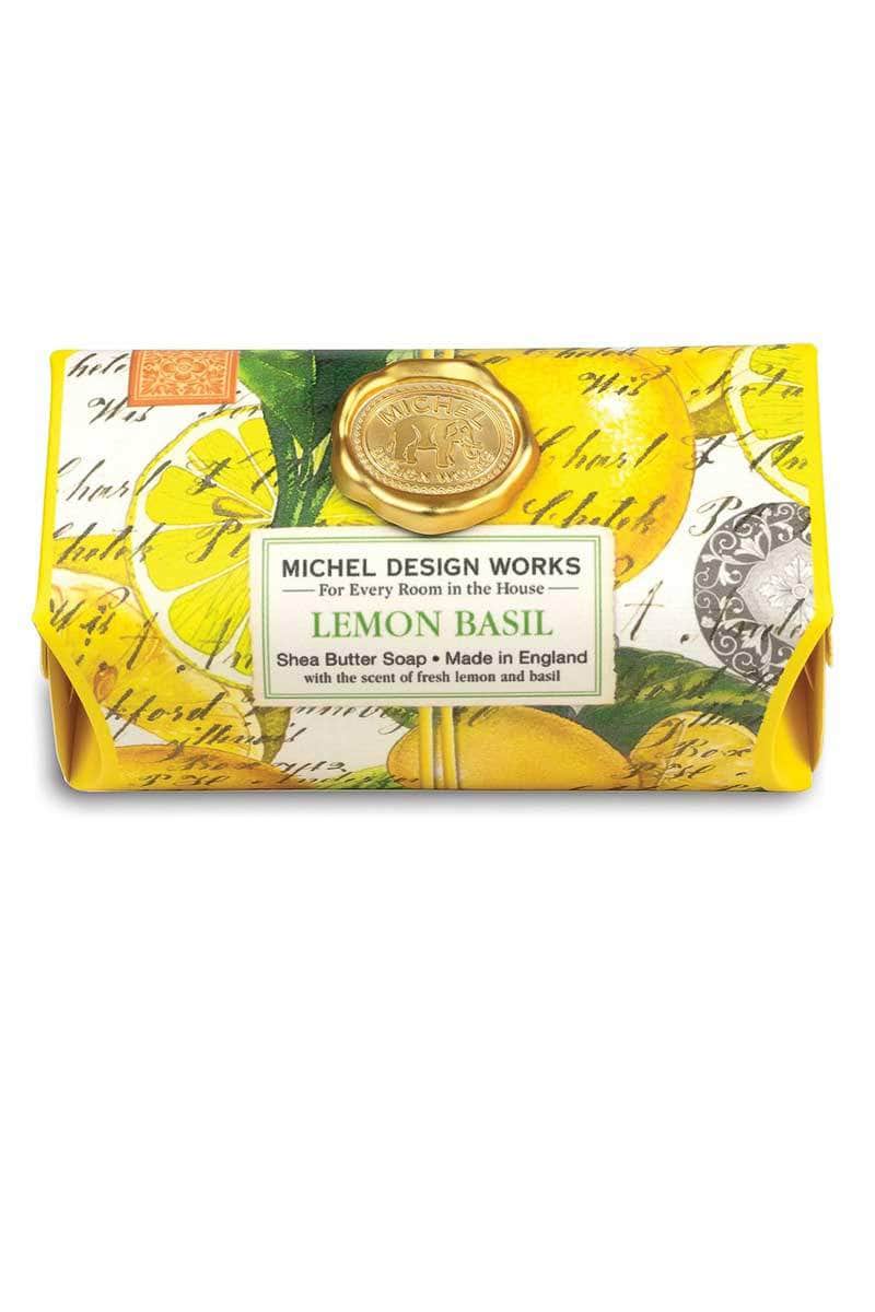 Everyone will delight in Michel Design Works Lemon Basil Large Soap Bar. Our triple-milled soap is silky smooth and long lasting, and contains the finest pure palm oil, glycerin, and rich shea butter. Exquisitely wrapped in Michel Design artwork with the classy logo seal, it also makes a great gift, perfect all year round.