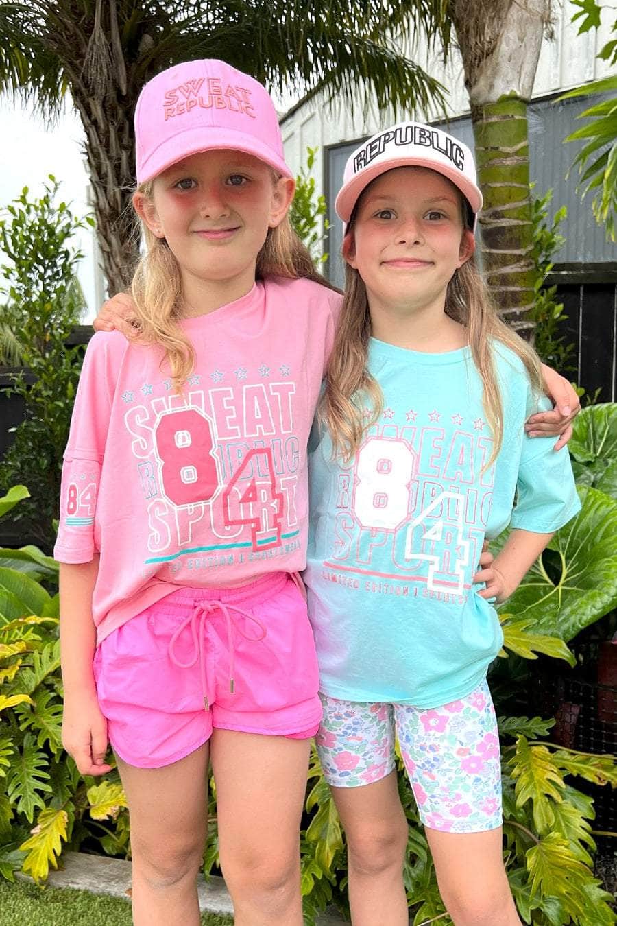 A light pink T-shirt with Sweat Republic design.