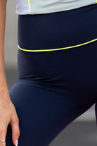 A navy legging with lower leg panels.