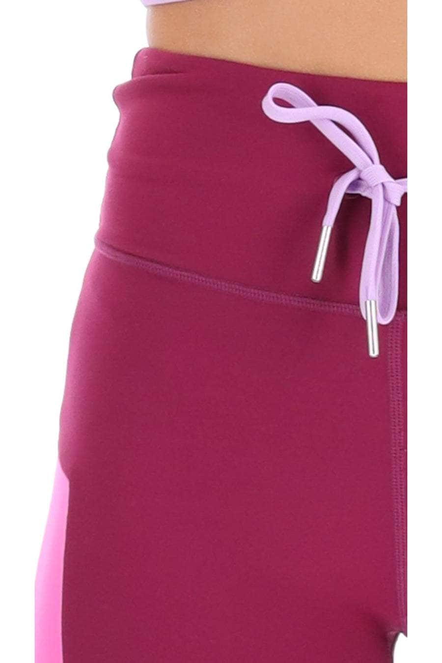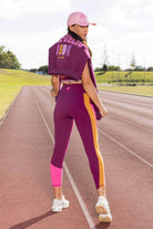 A deep purple full-length legging with side panels.