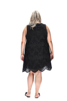 A black broderie anglaise shift mini dress.