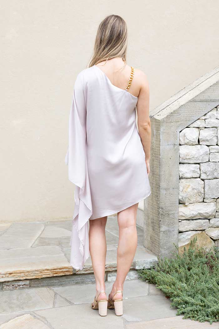 Anna Satin One Shoulder Chain Dress Oyster