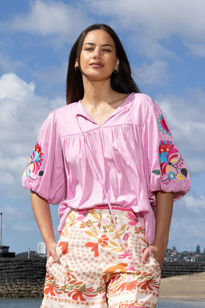 Juju Embroidered Blouse Pink