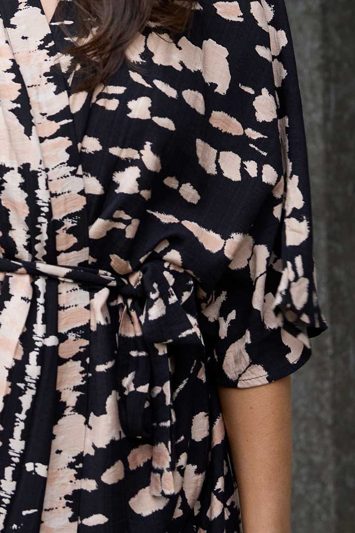 Esme Kimono Black Beige Print