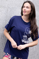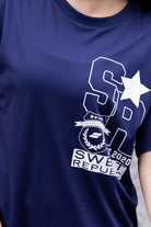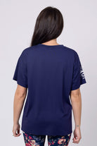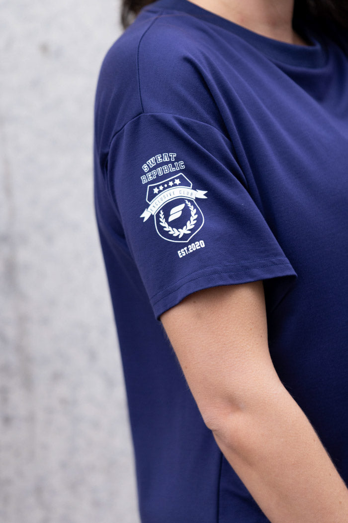 A soft navy colour tshirt. Perfect for staying active or casual wear.