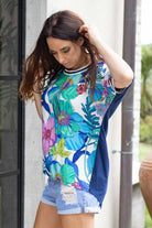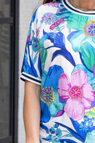A top with a combination of t-shirt and floral.