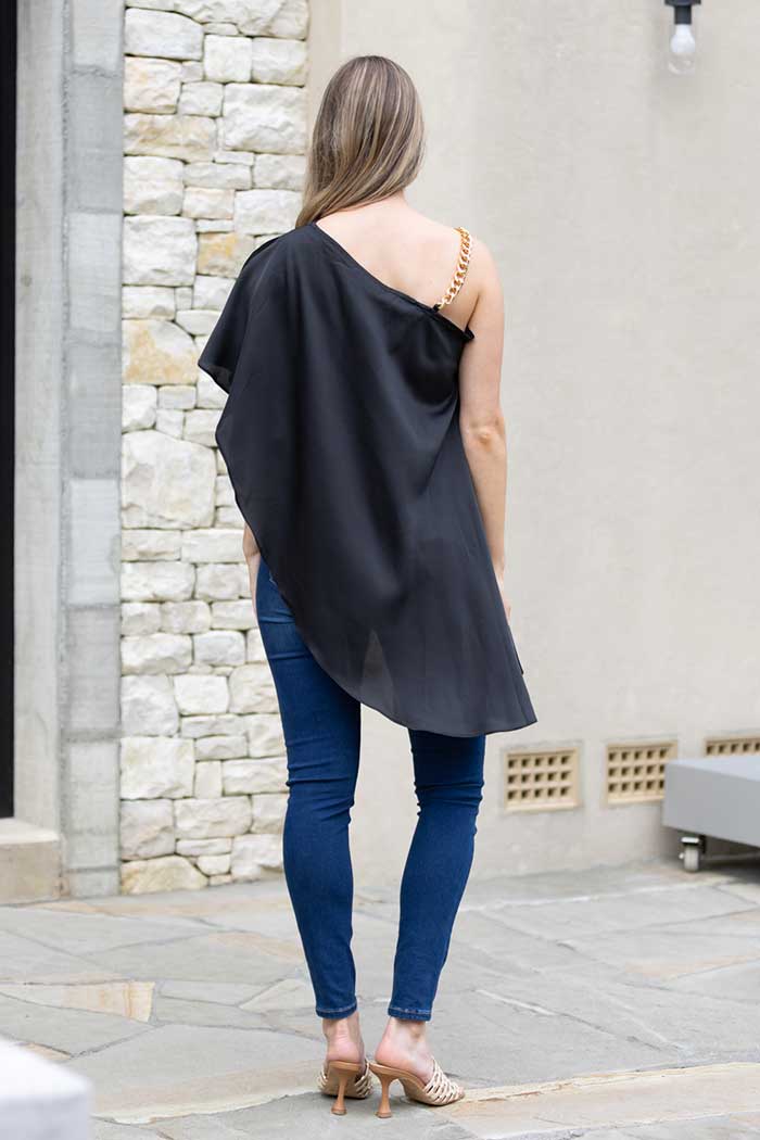 Hartley One Shoulder Chain Top Black