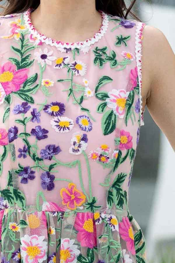 - Neckline & armholes trimmed with White/Pink zig zag trim