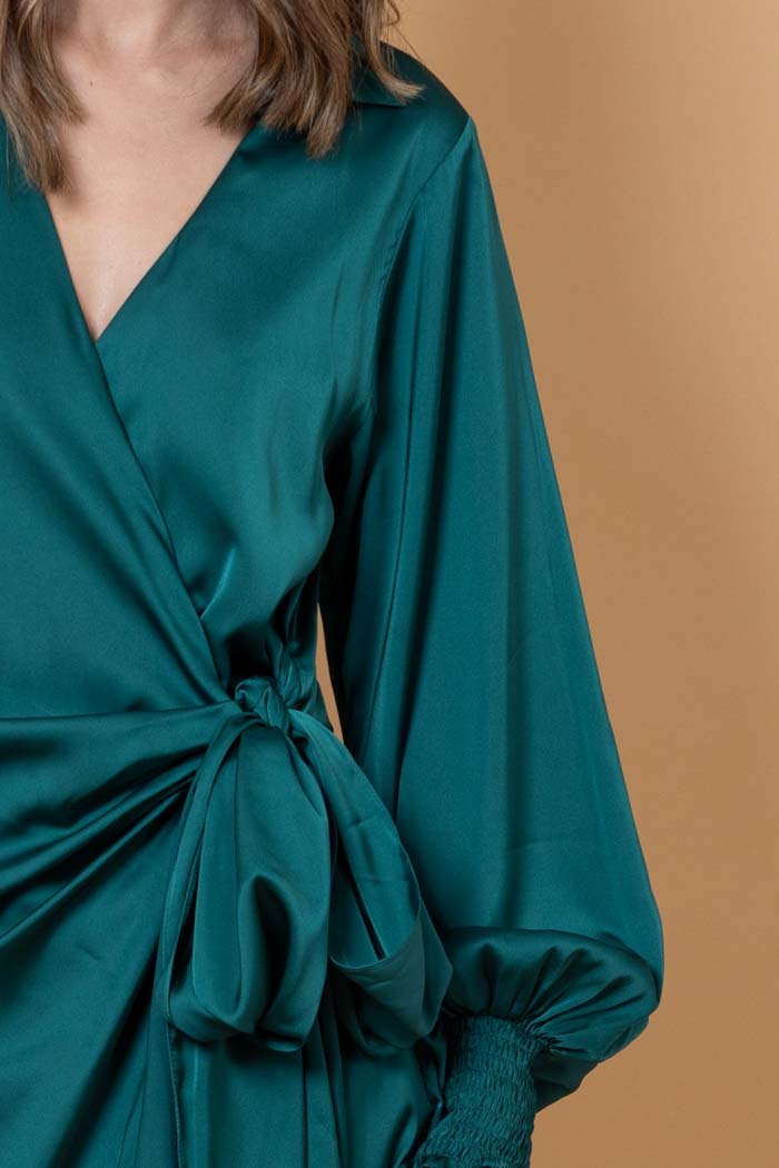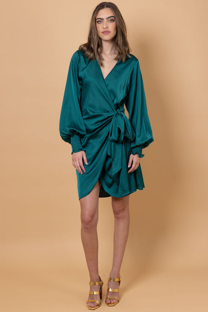 Luca Wrap Mini Dress Emerald
