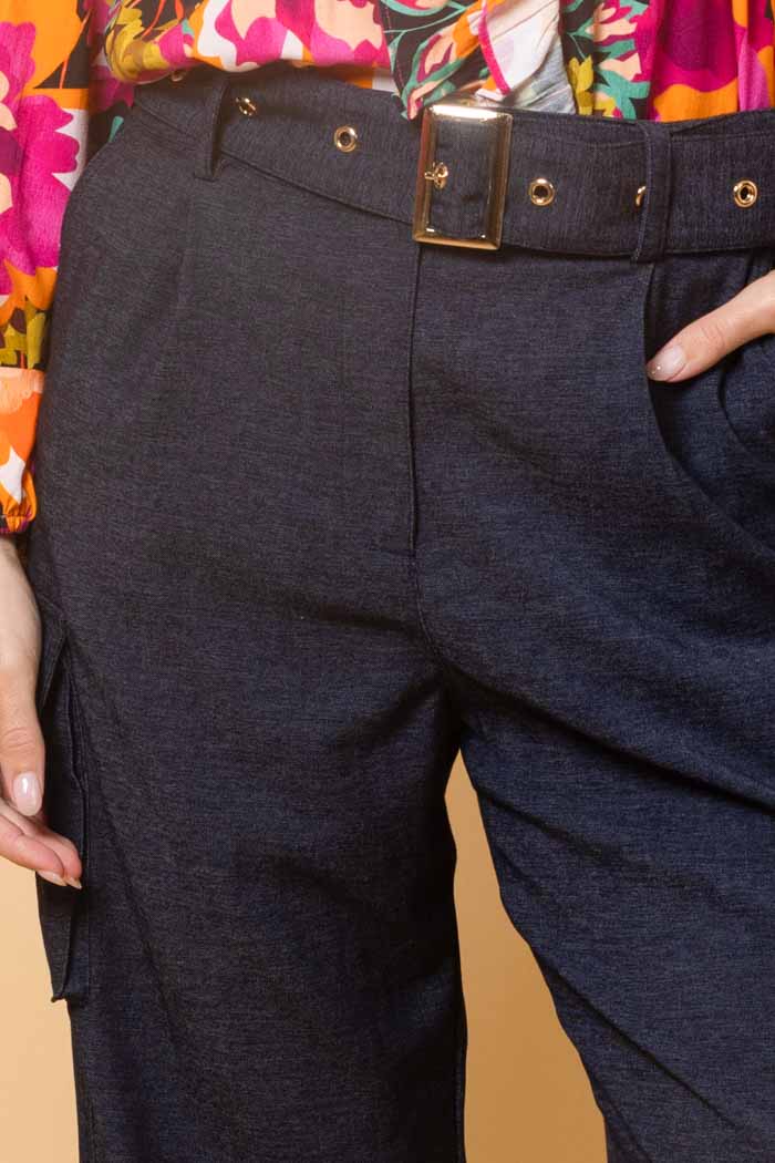 A navy cargo pant.