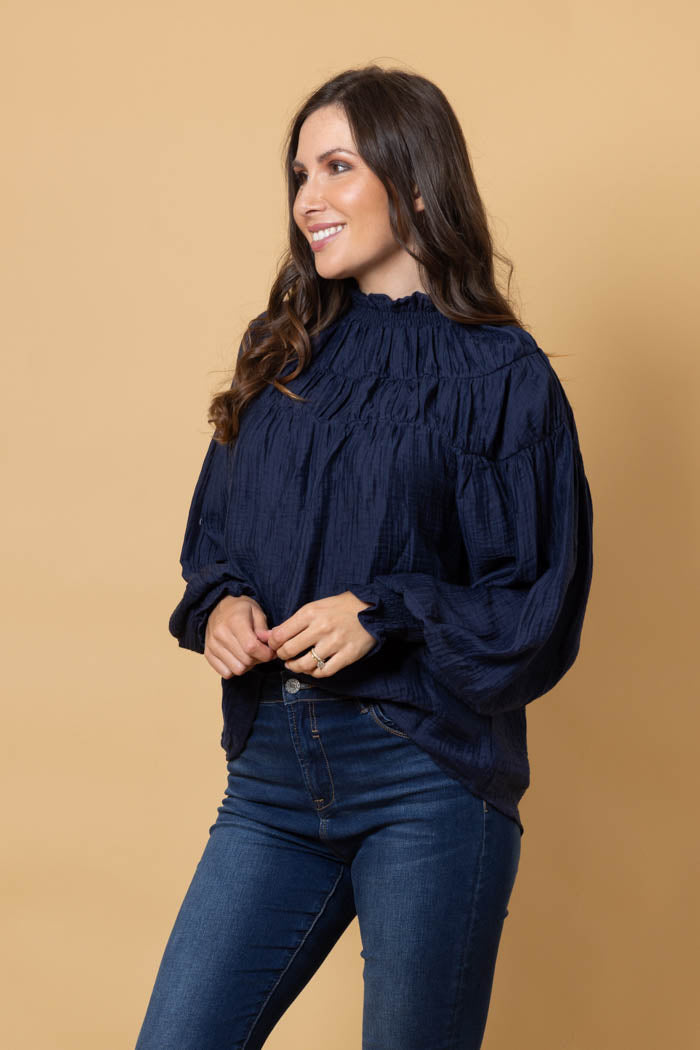 Jontee Long Sleeve Blouse Navy