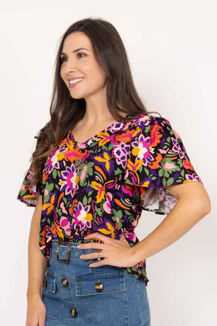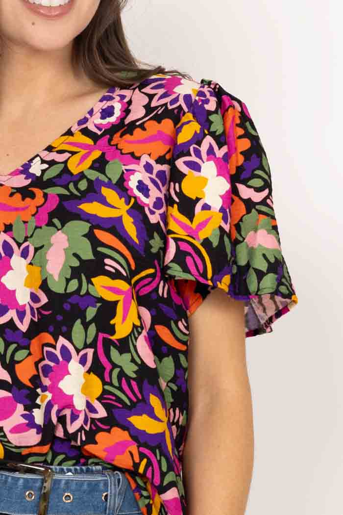 Dehlia Top Black Floral