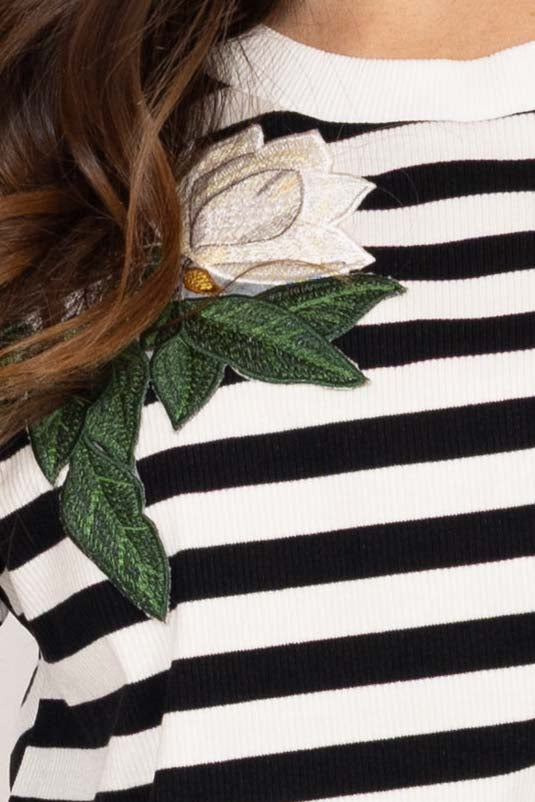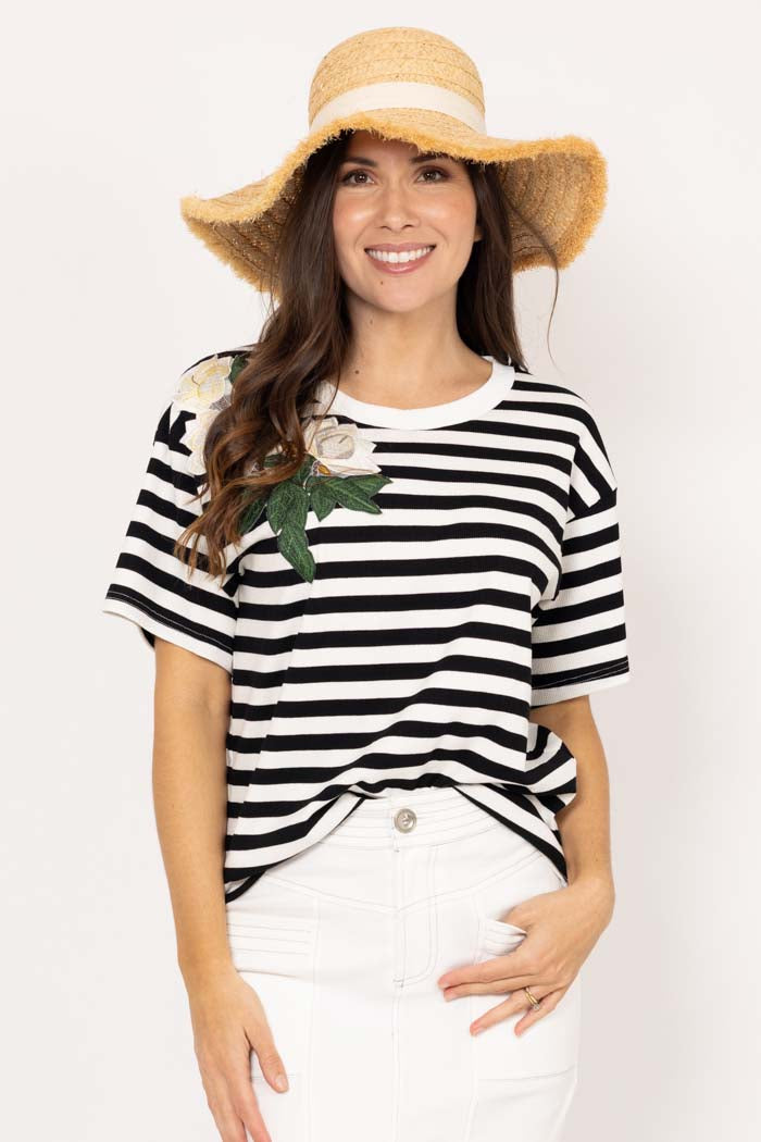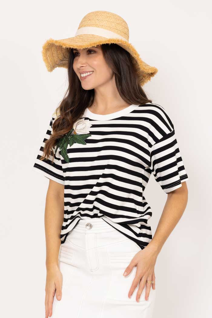 Izzie Stripe Flower T-Shirt Black
