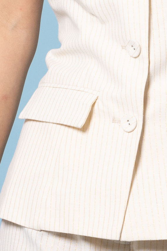 A cream & gold pinstriped bodice top.