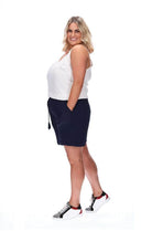 Cute longer length shorts styled in crinkle chiffon, fully lined with patch pockets, cuffed hems and elasticated drawstring waist.