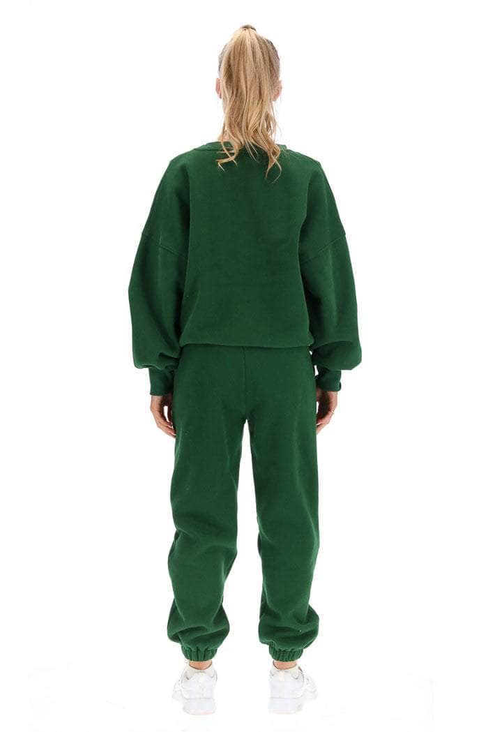 A forest green sweatshirt.