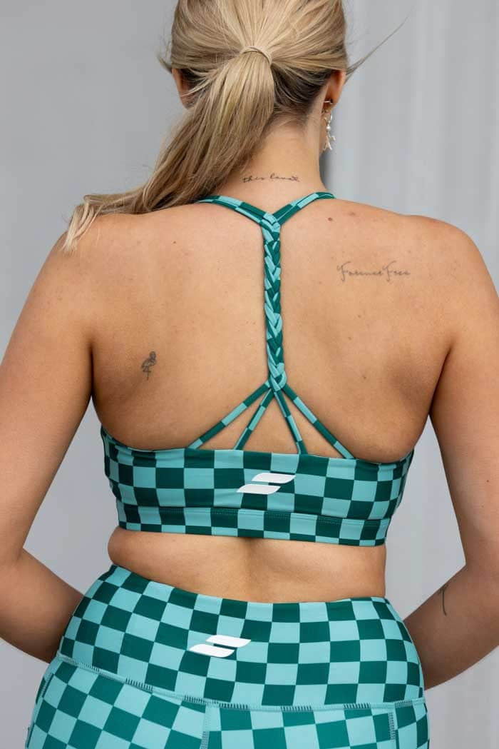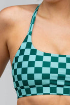 A teal checkered print crop.