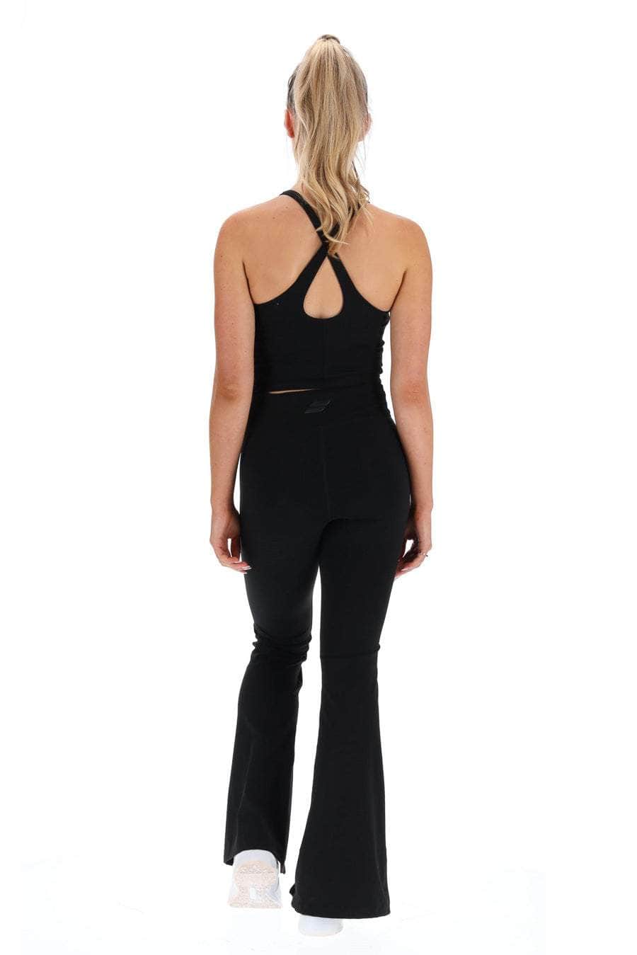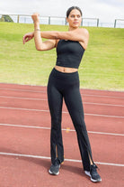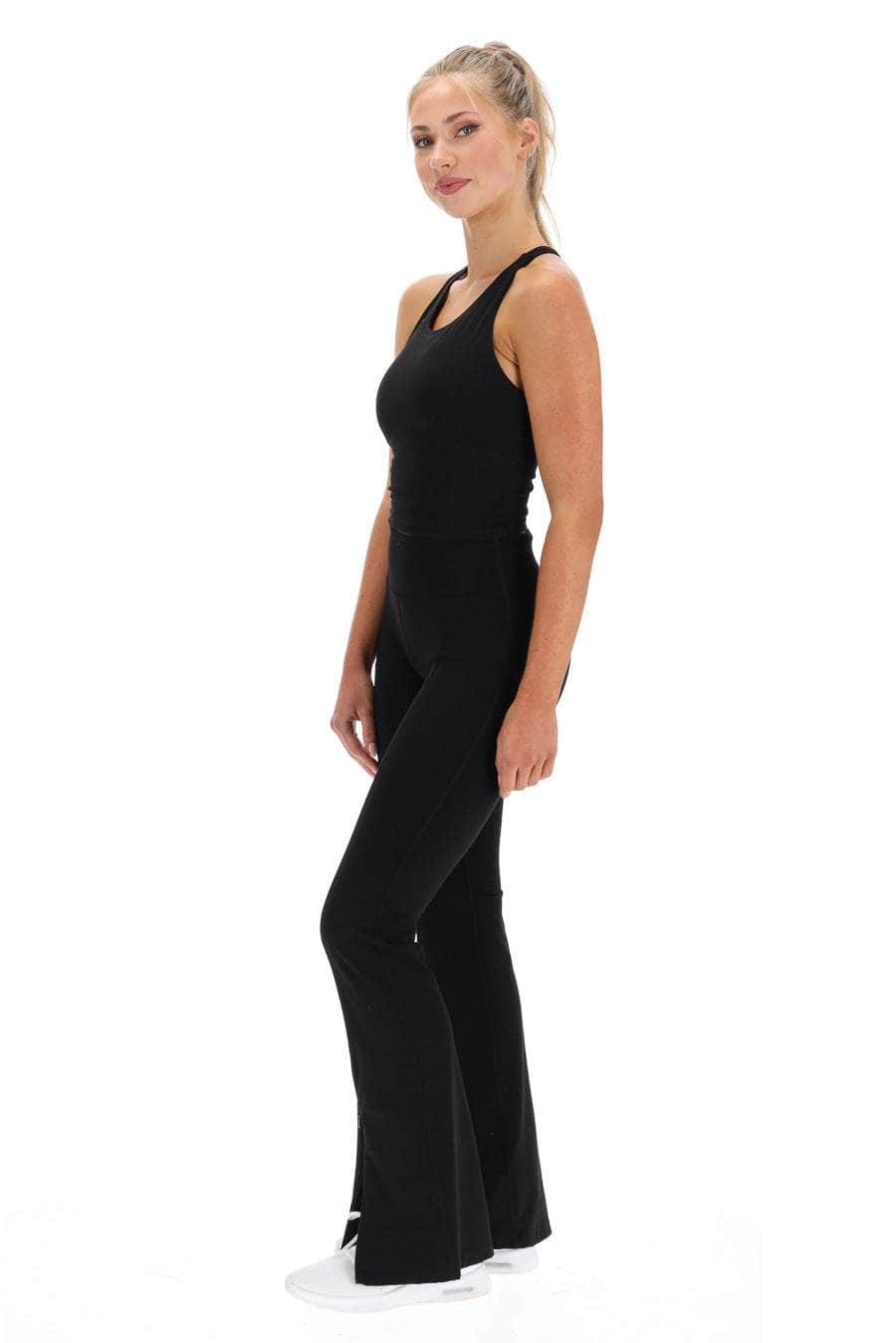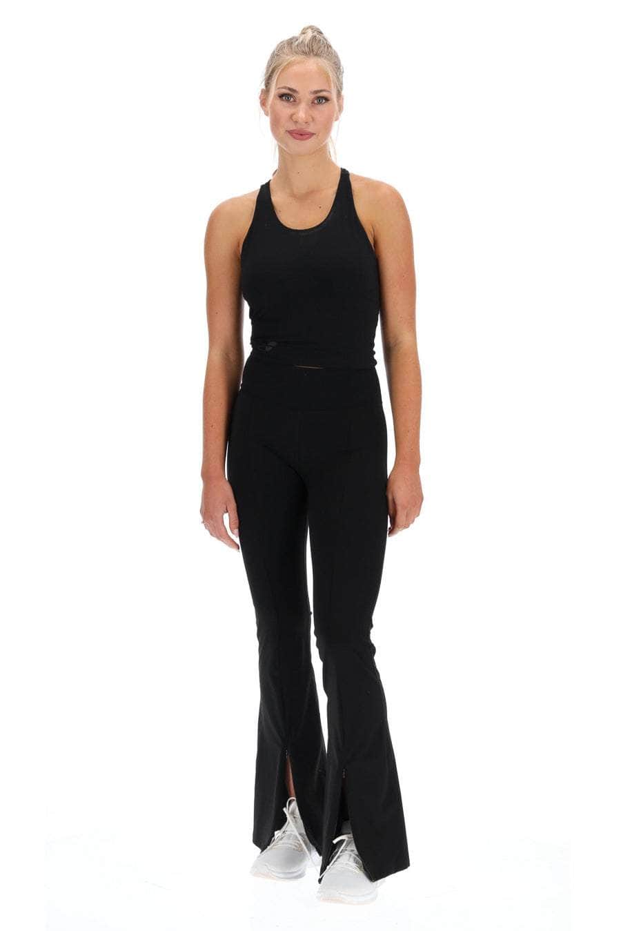 A flared black legging, made from recycled Nylon. The bestselling design now with front splits!