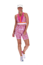• Lilac based leopard print rib fabric, with panels of pink, light pink & orange