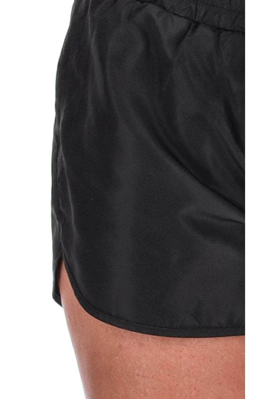 A black running short with built-in mesh underwear.