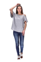 Features: Shoulder cutout, dropped shoulder, a line, straight hem