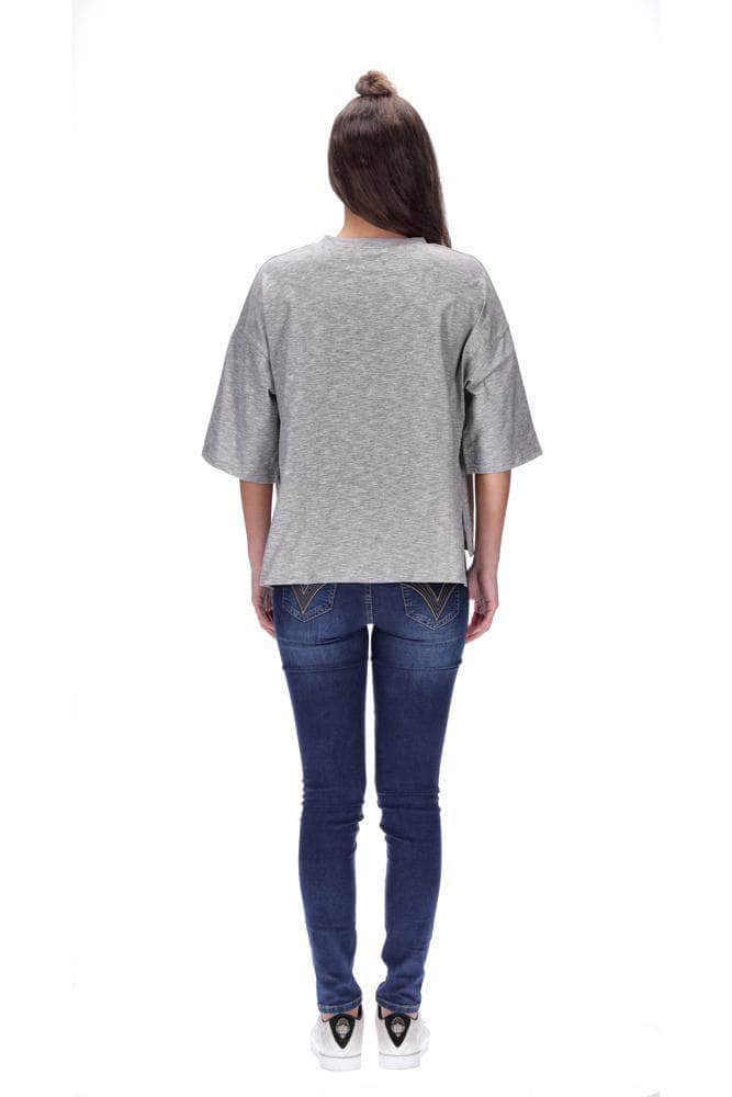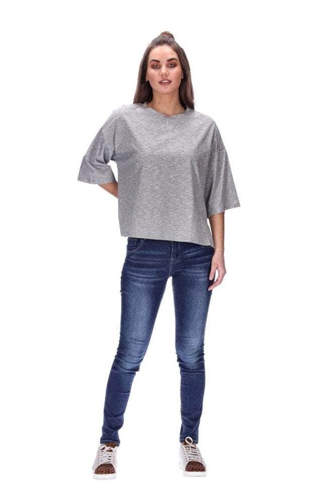 Features: Elbow length sleeves, textured fabric, dropped shoulder, small side splits, slightly longer on back, straight hemline